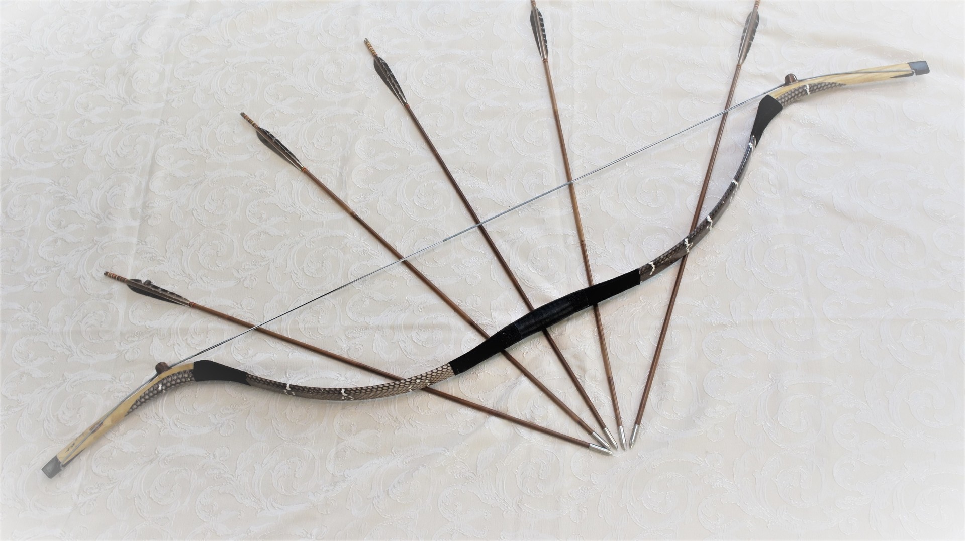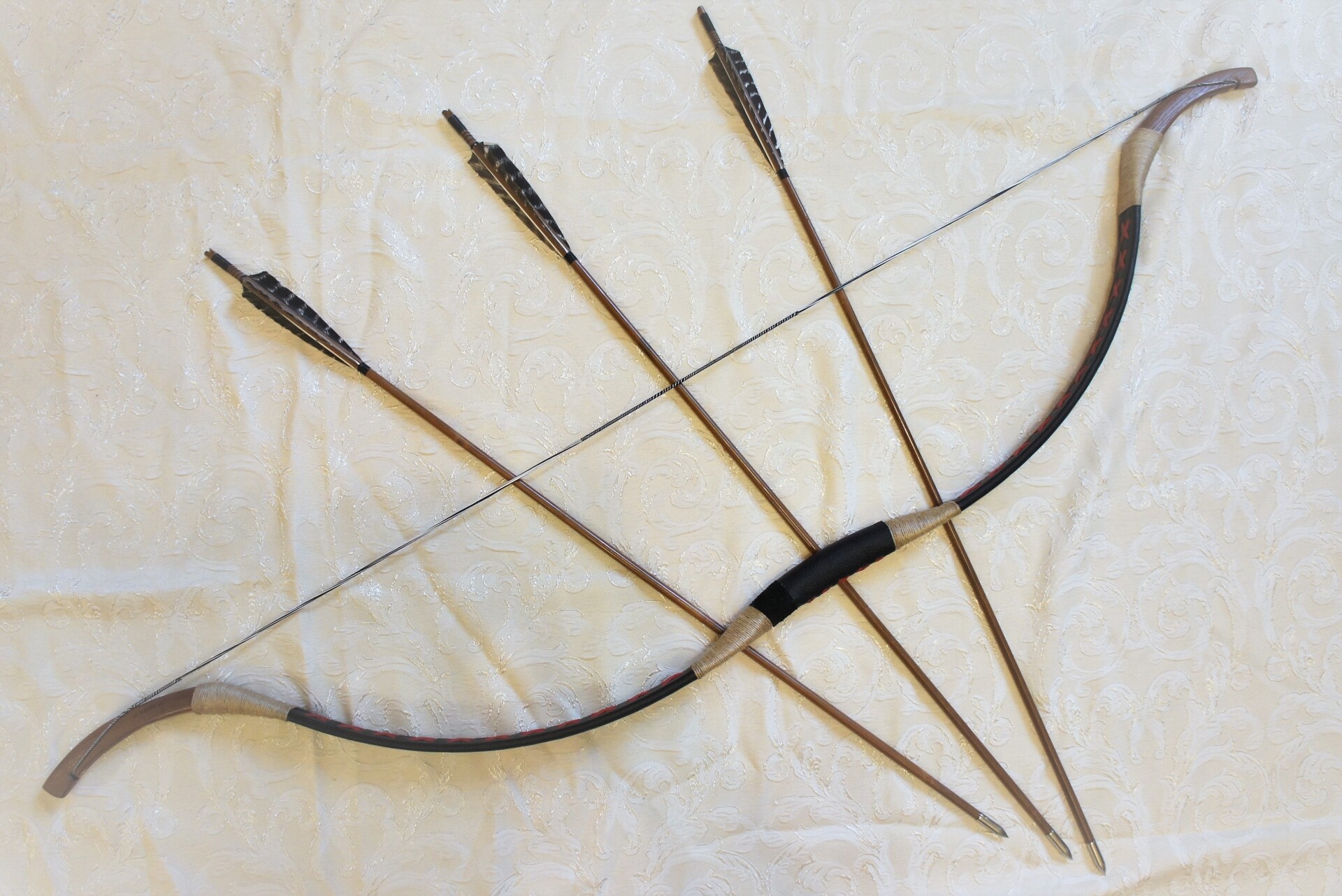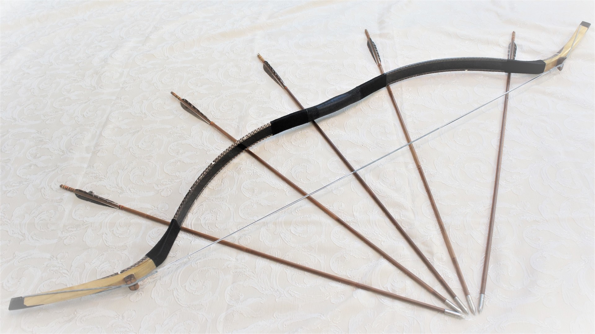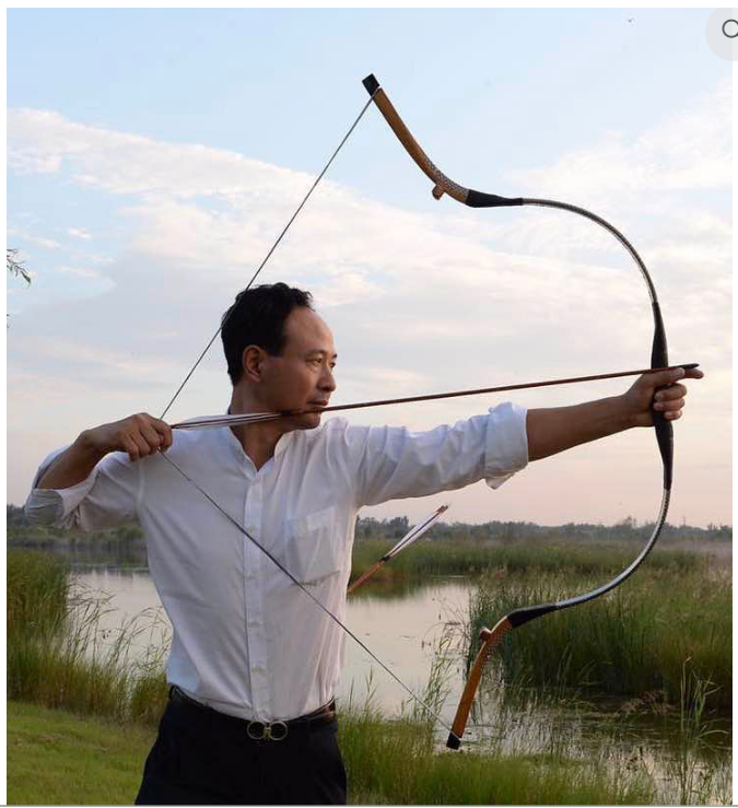 Такого рода луки с короткими плечами и длинными конечностями широко использовались в Азии с 200 г. до н.э. до 1300 г. н.э. , Похожий лук использовался монголами в их завоеваниях. Лук с очень длинной деревянной законцовкой и короткими плечами, выглядит также, как раскопанные луки того периода. Короткая длина дает ему быструю скорость стрелы. Отлично подходит для стрельбы с коня. Для поднятия стрел с земли, не слезая с лошади на концах выполнены крючки.